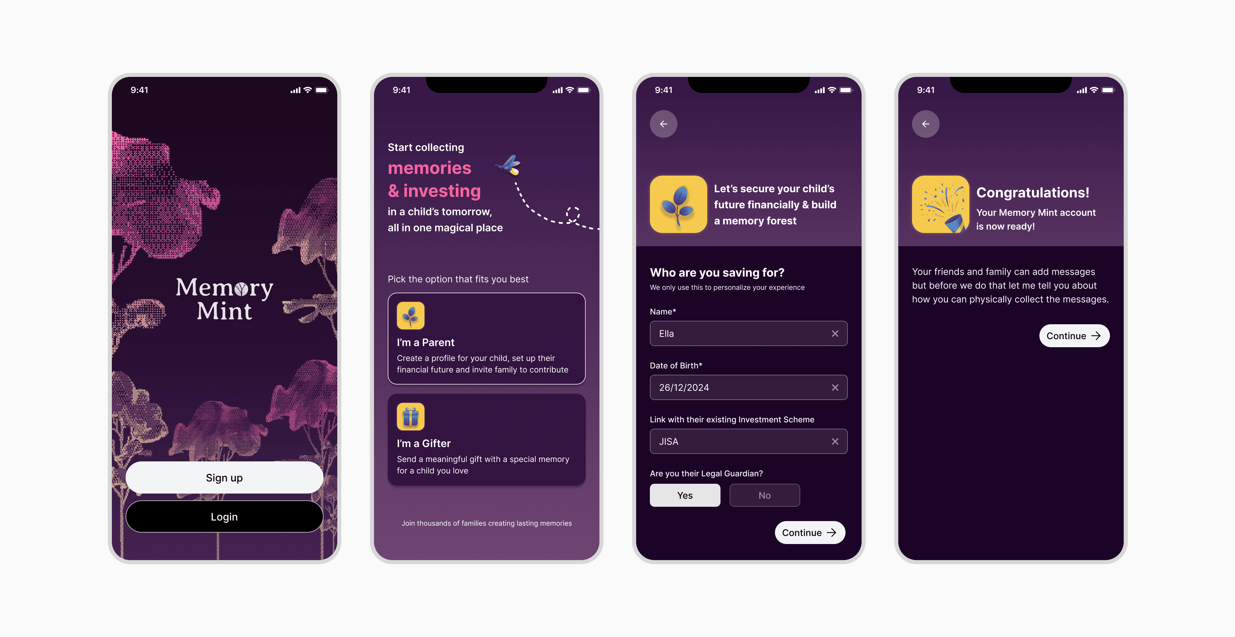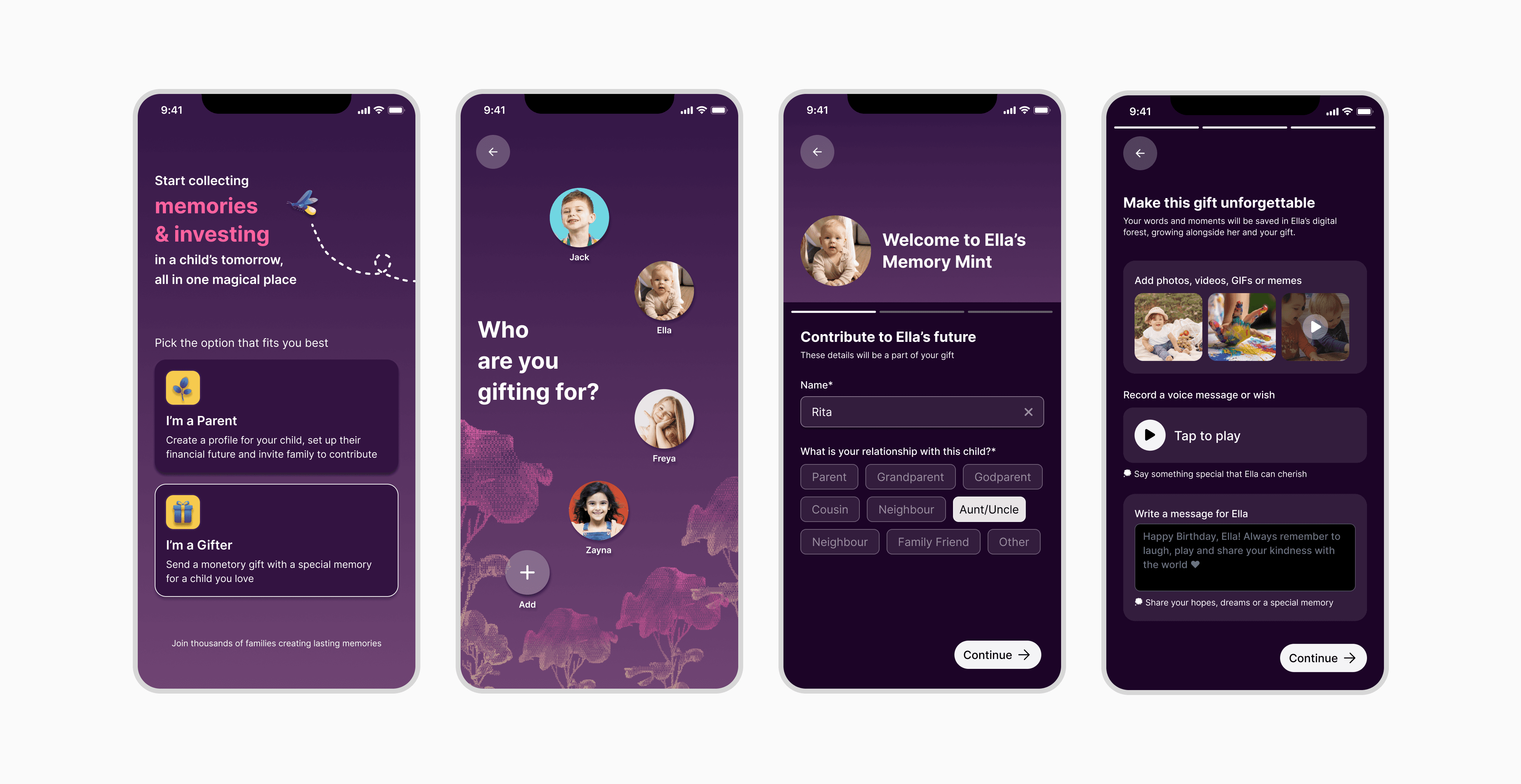 The app serves as the foundation for the entire user journey. It manages every step of the process, from creating a new "pot" on Memory Mint to allowing friends and family to send financial gifts. It handles saving that money and receiving the memories attached to it, ensuring the whole experience runs smoothly.
