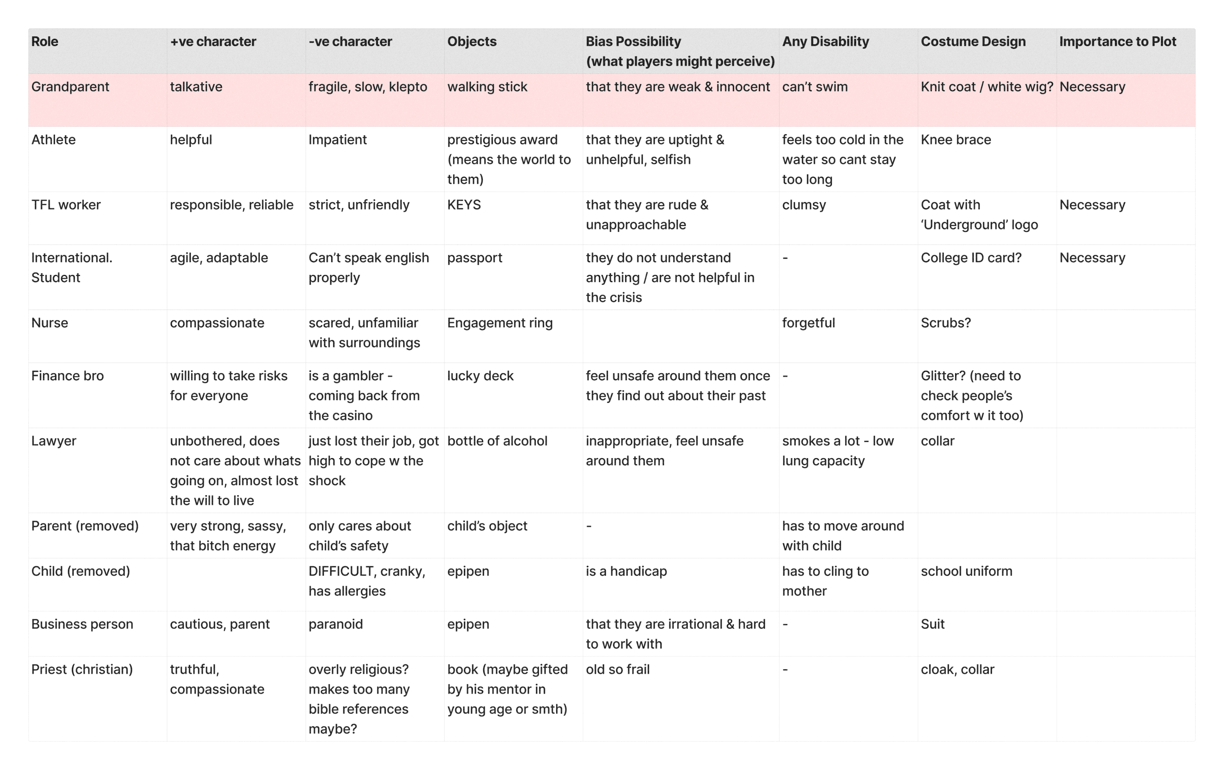 Each character received artifacts and specific traits to create tension, dialogue, and conflict.