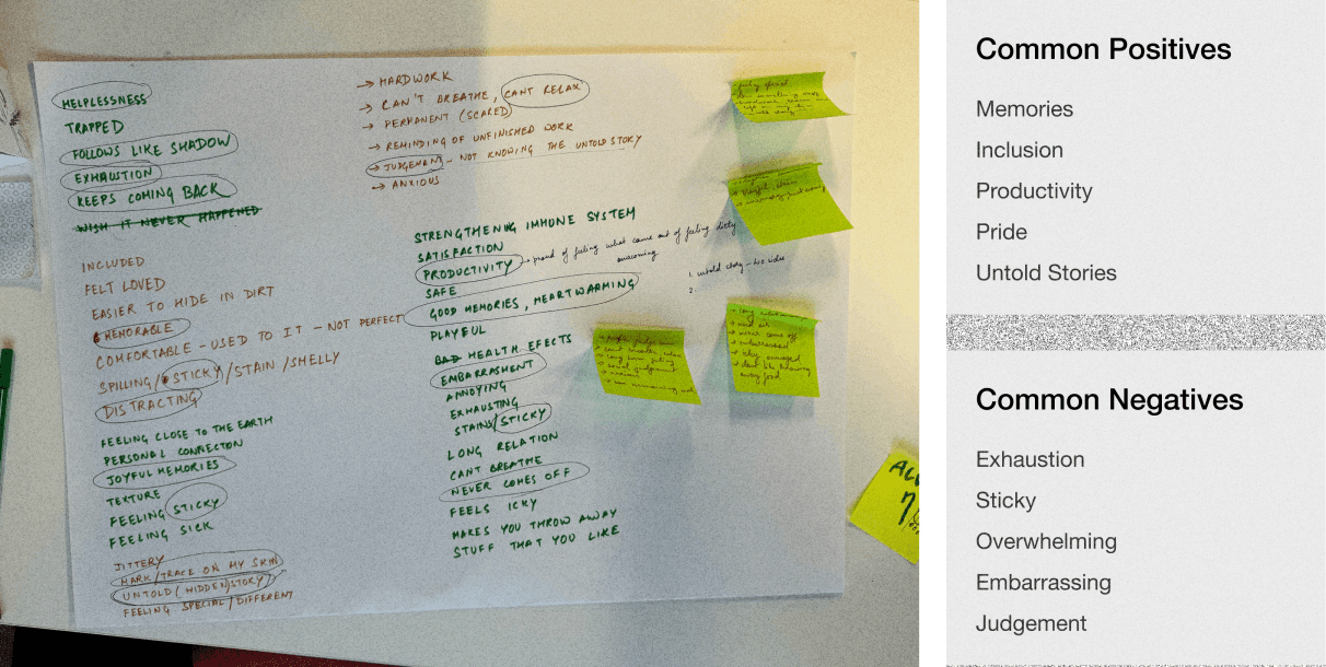 Instead of focusing on guilt, we decided to explore the emotion of ‘feeling dirty.’ We wrote love letters and breakup letters to this feeling. Then, we analyzed the insights to uncover the common positive and negative emotions we all share about it.