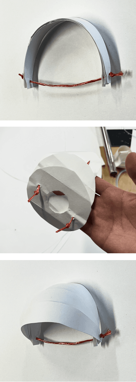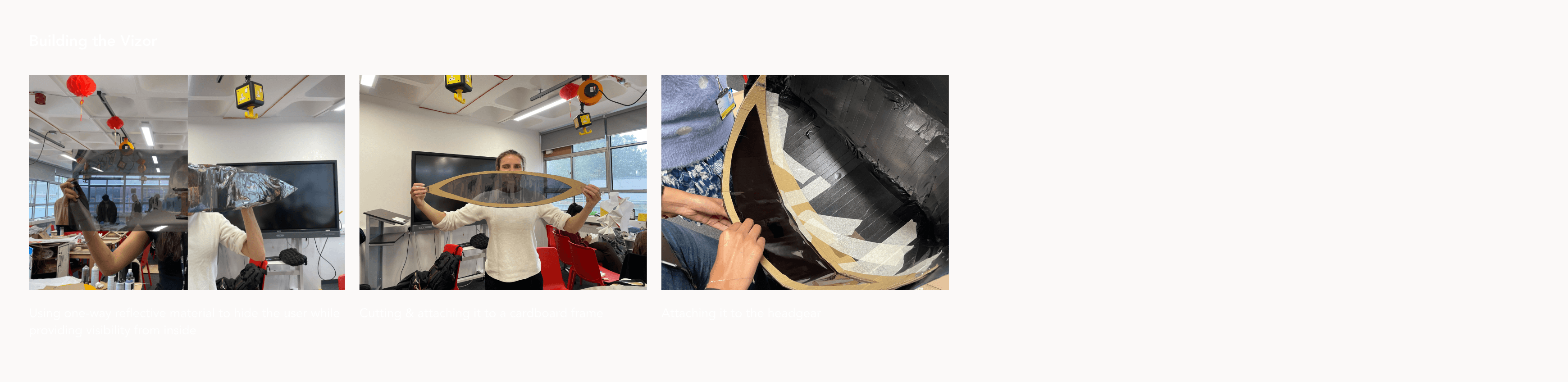We initially aimed for every part on the headgear to move. After multiple failed attempts with various sizes, shapes & orientations, we decided to fix all layers except the visor. This adjustable vizor would give back control to the user.