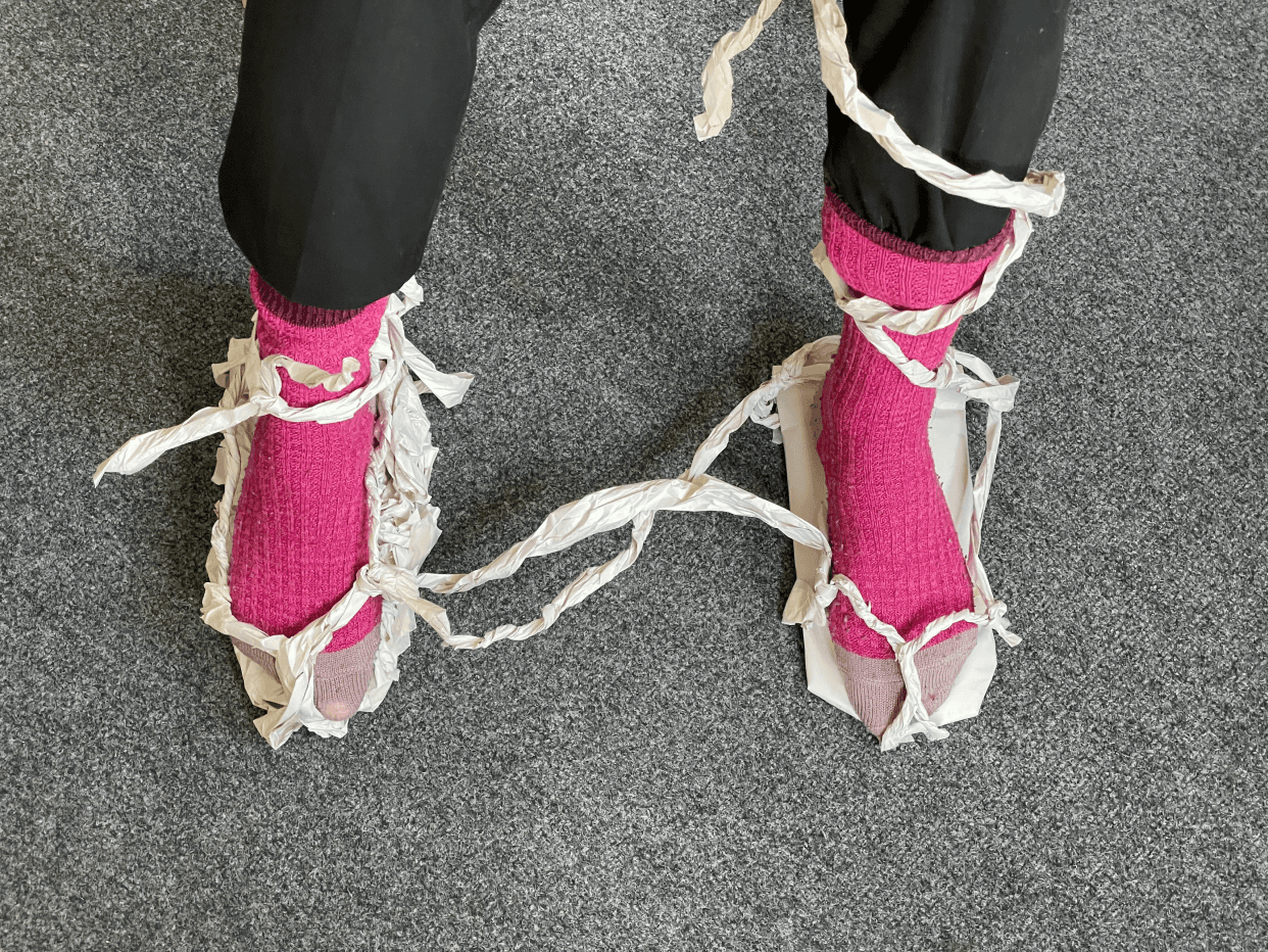Wood and soft plastic tubes were used to provide structural support during assembly.