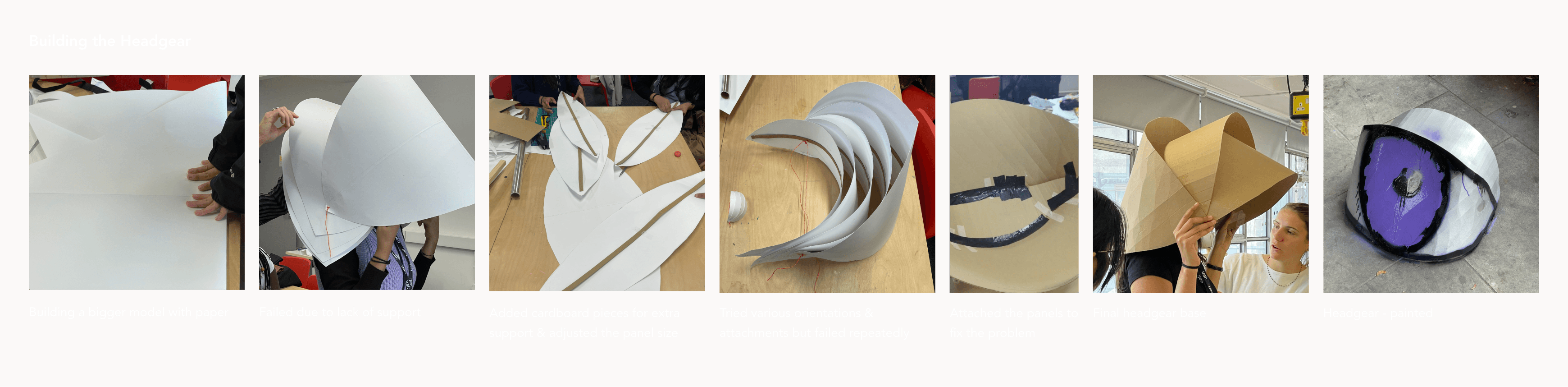 After discussing possible ways to move ahead, we finalised on designing a headgear inspired by the scales of an armadillo.