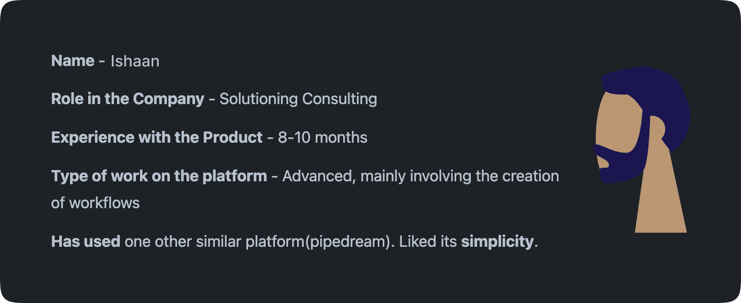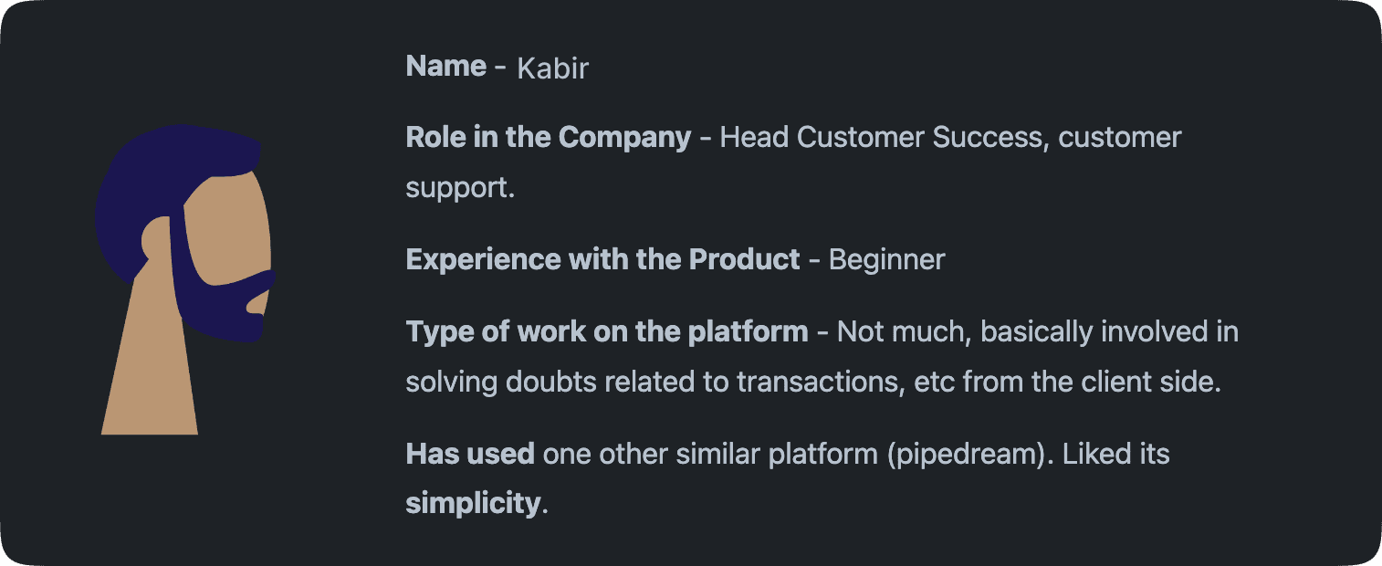 After completing my research and gaining a better understanding of the product, I began creating personas to clearly understand the variety of user base which used the tool. Mainly, there were 2 kinds of users dominating our user base, the Beginners, and the Advanced users.