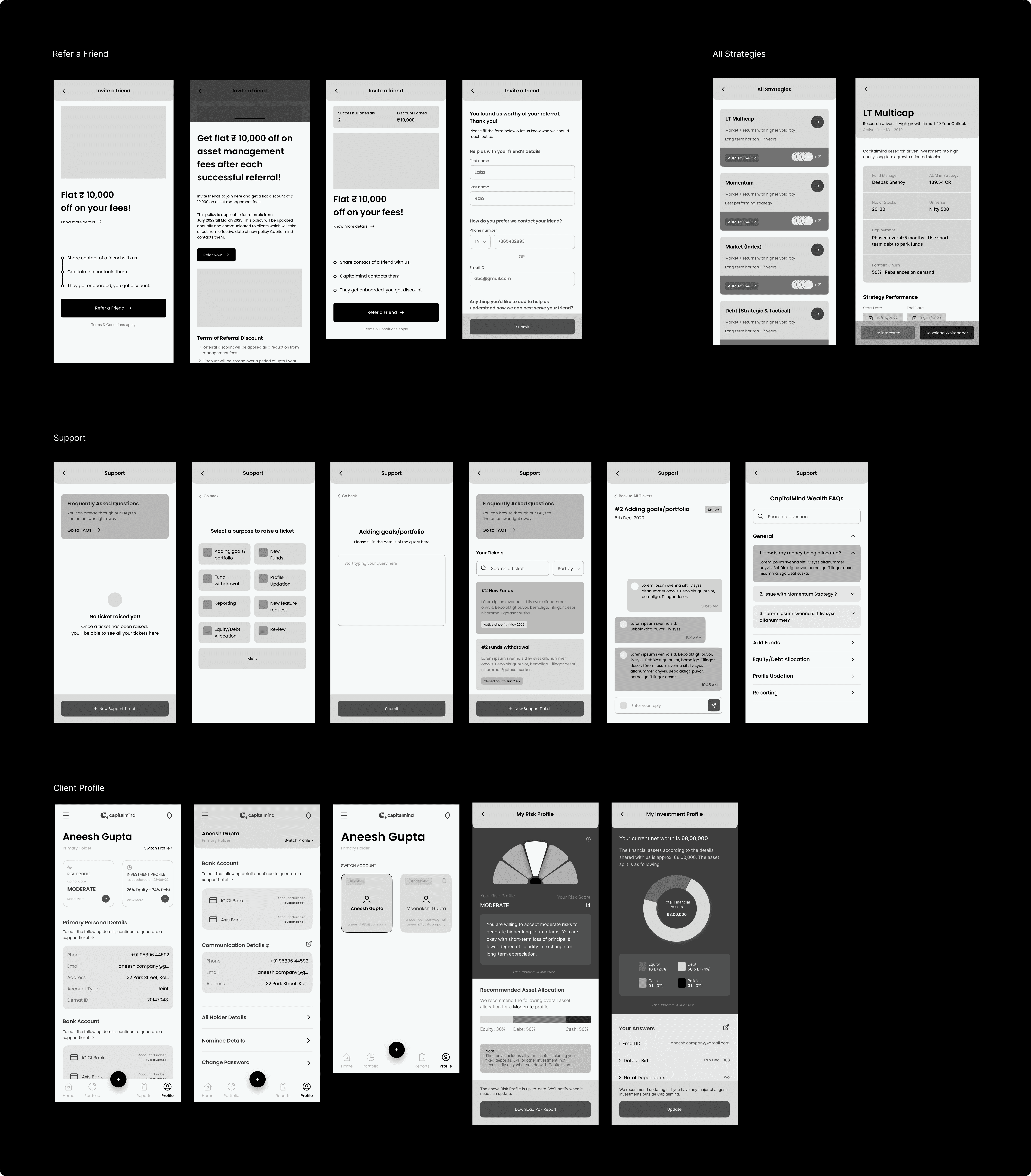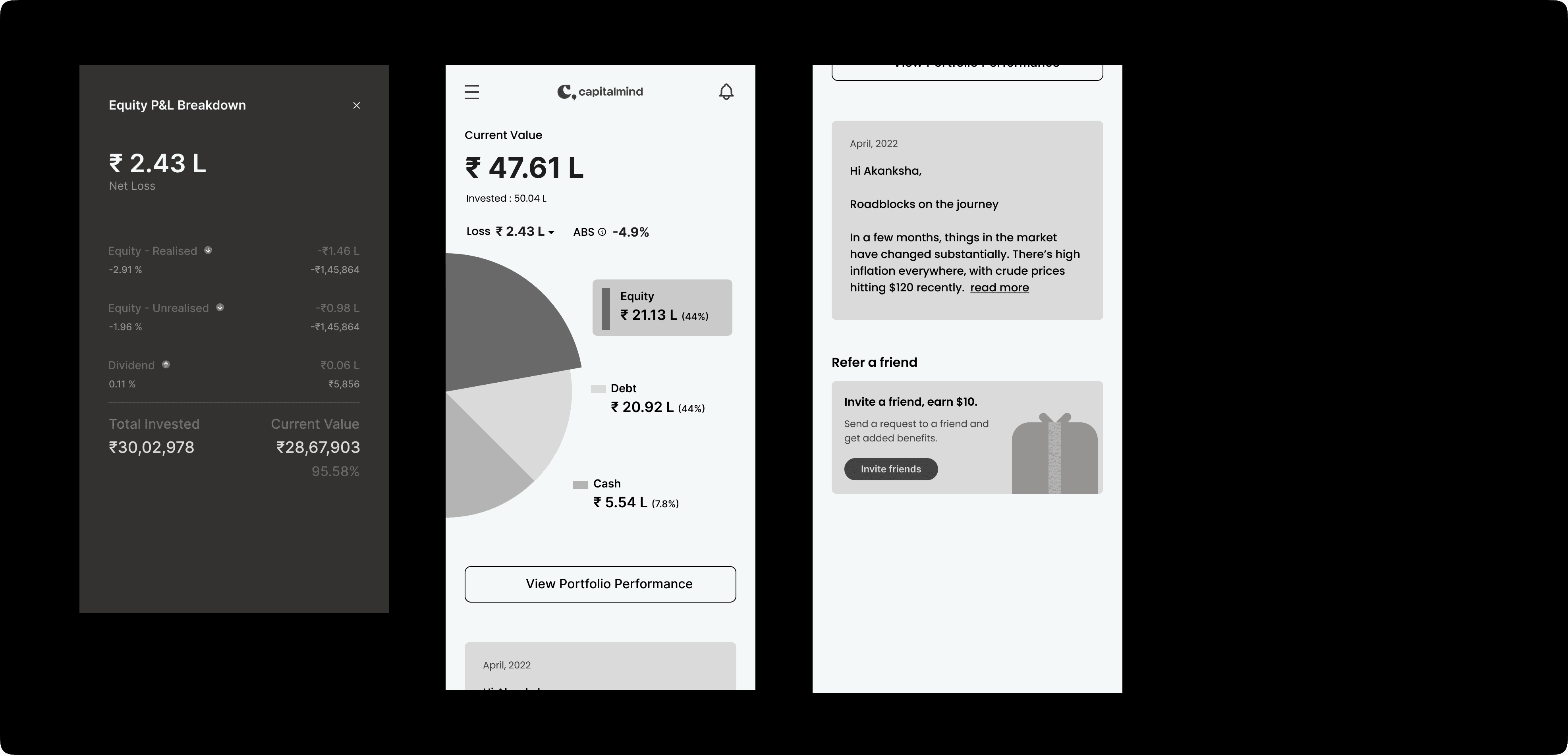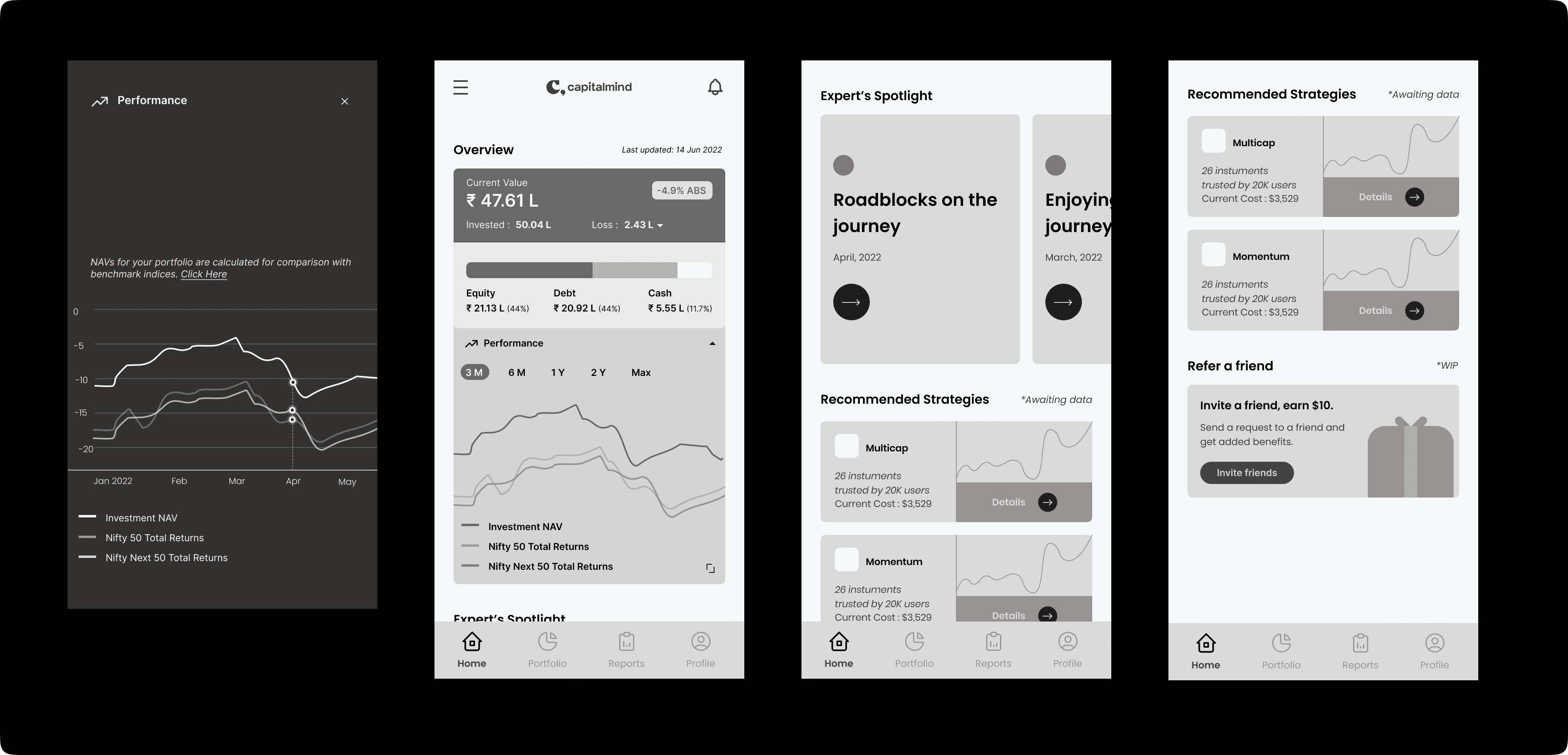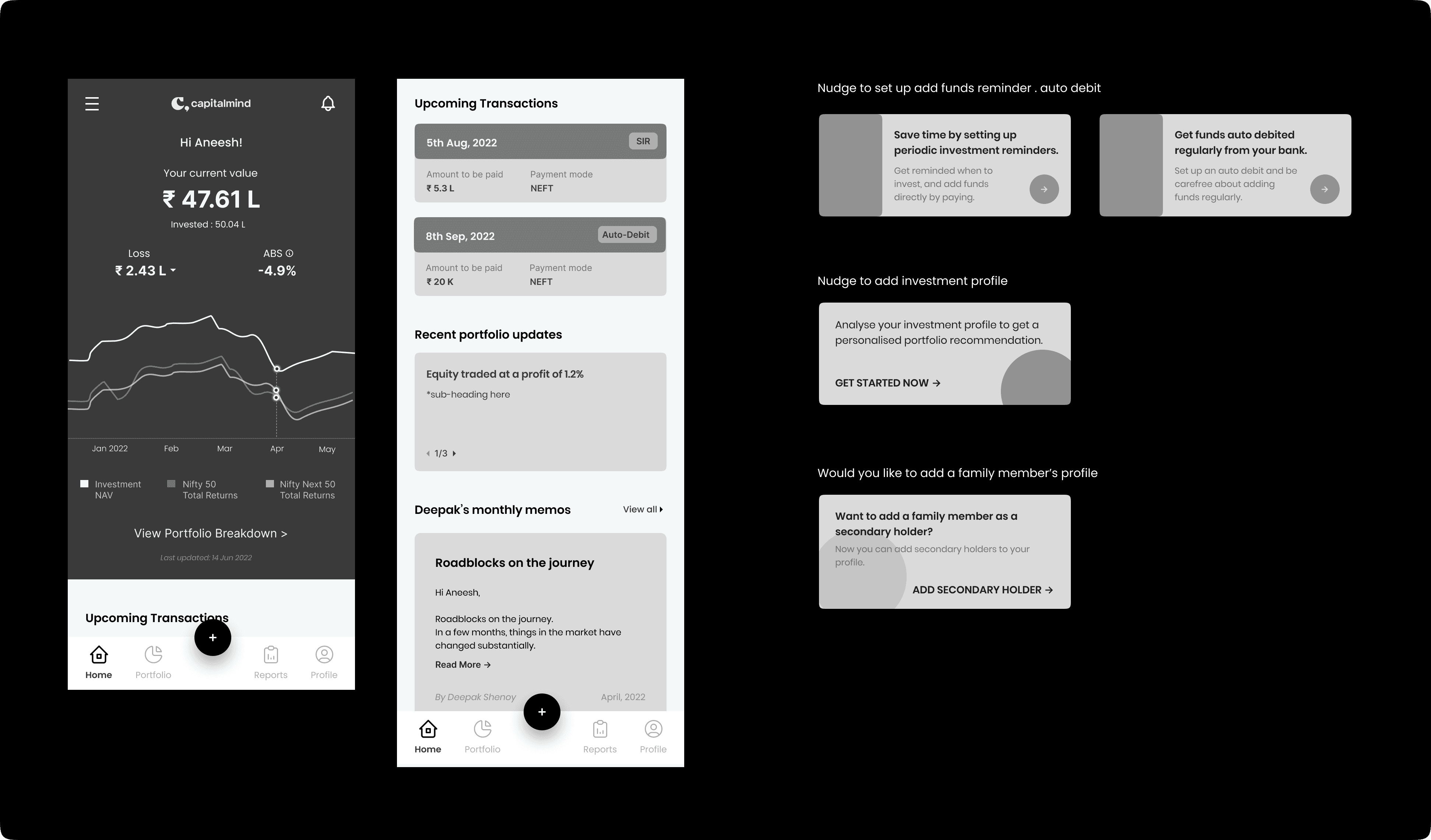 We tested these designs with a few actual clients and received highly positive responses. Subsequently, we handed over the designs, along with their respective prototypes, to the Capitalmind team, marking the conclusion of this design project.
