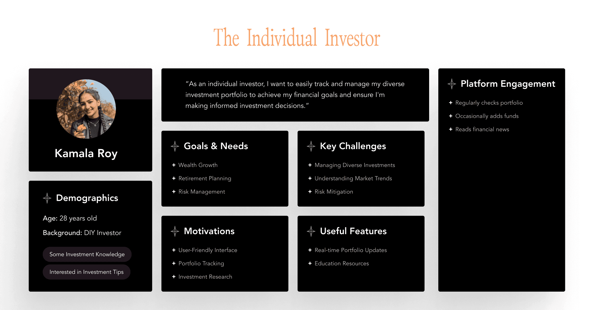 During this project, we conducted a comprehensive 7-day research endeavor. The primary objective of the team was to collect qualitative data concerning user behaviors and sentiments related to general fintech products and portfolio management services similar to Capitalmind. We opted to focus our primary emphasis on the following three key areas: