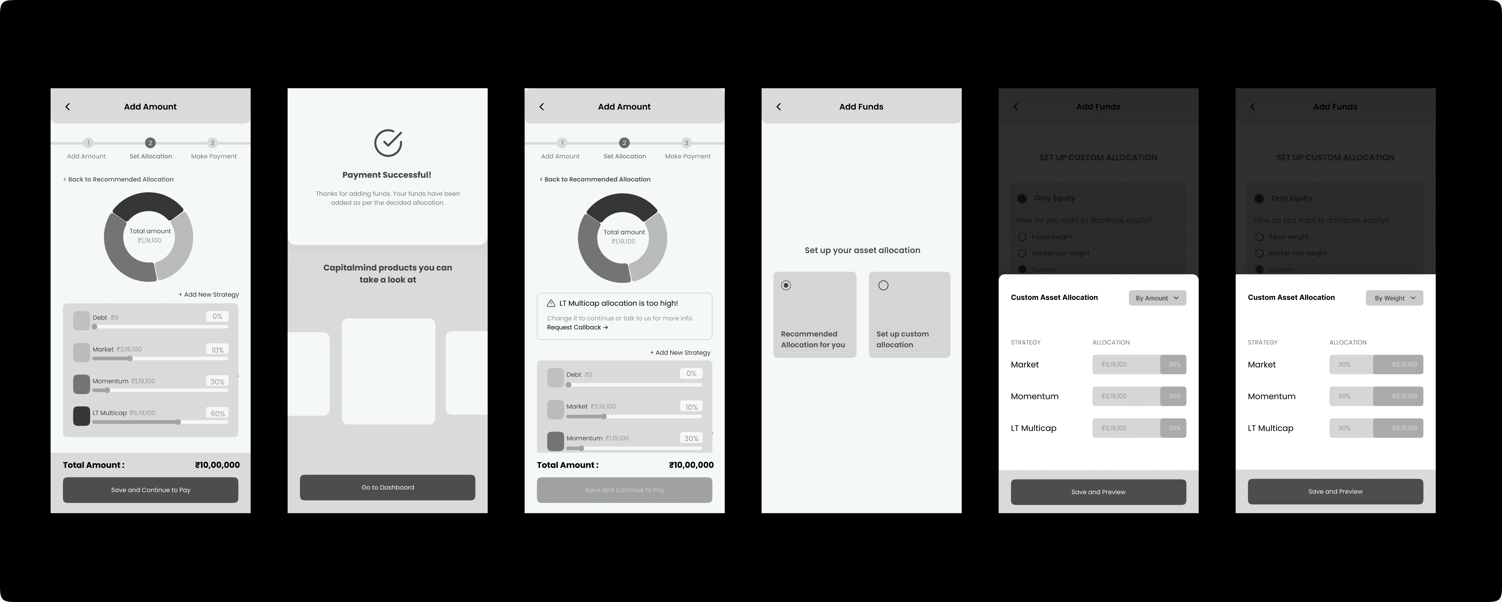 After adding new funds to their account, users had to an option to either confirm the capitalmind allocation, or change it to any random allocation and sending it to the capitalmind team for confirmation. Most of these custom allocations were done by non professionals, hence weren’t suitable. This led to a lot of support tickets in the backend.