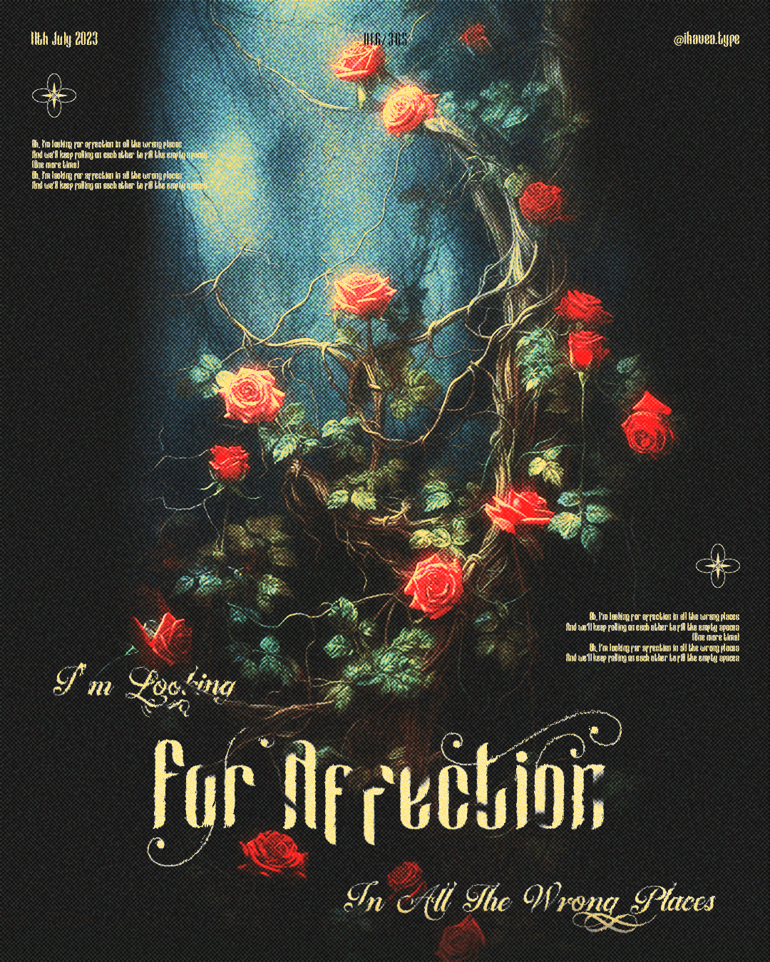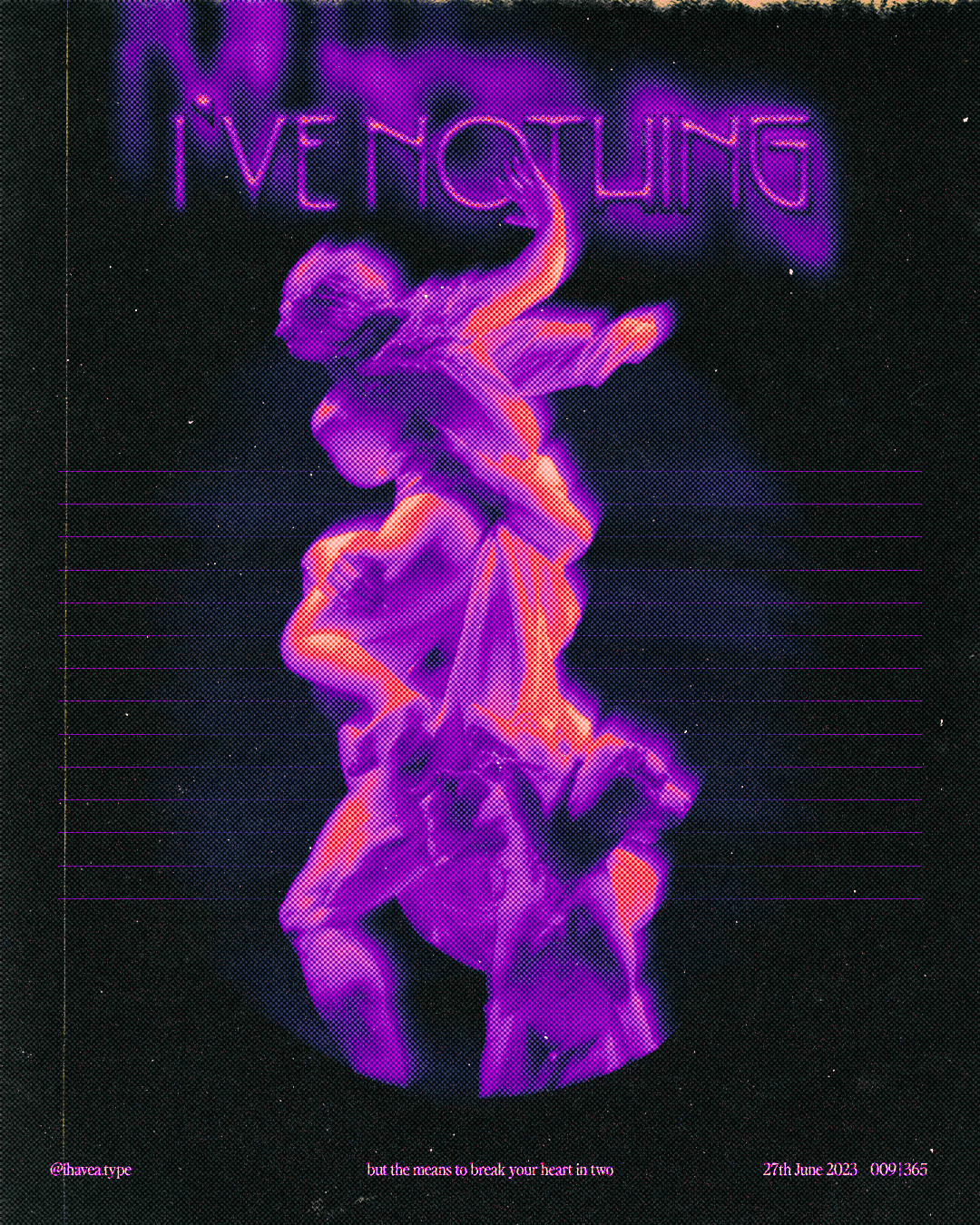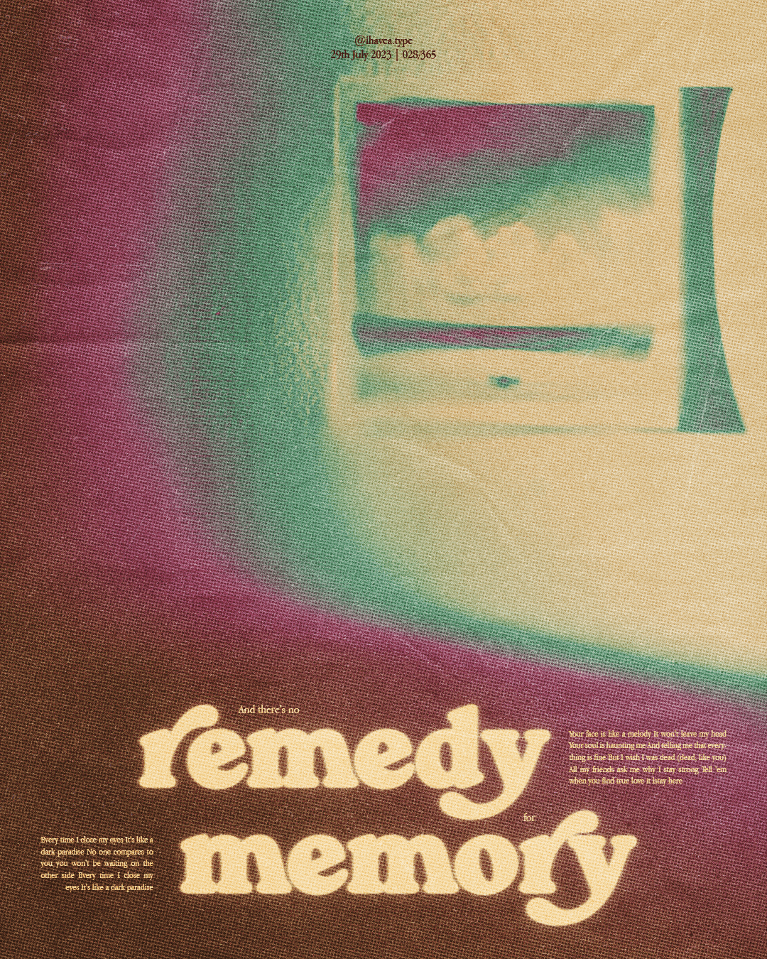 I practice graphic design to improve my visual design skills, focusing on typography and layout. Inspired by retro-futuristic aesthetics & my own love for dramatic visuals, I create experimental posters, learning from failures and embracing new techniques.